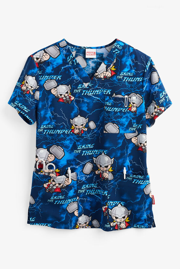 Cherokee Tooniforms Bring The Thunder Print Scrub Top Print Scrubs