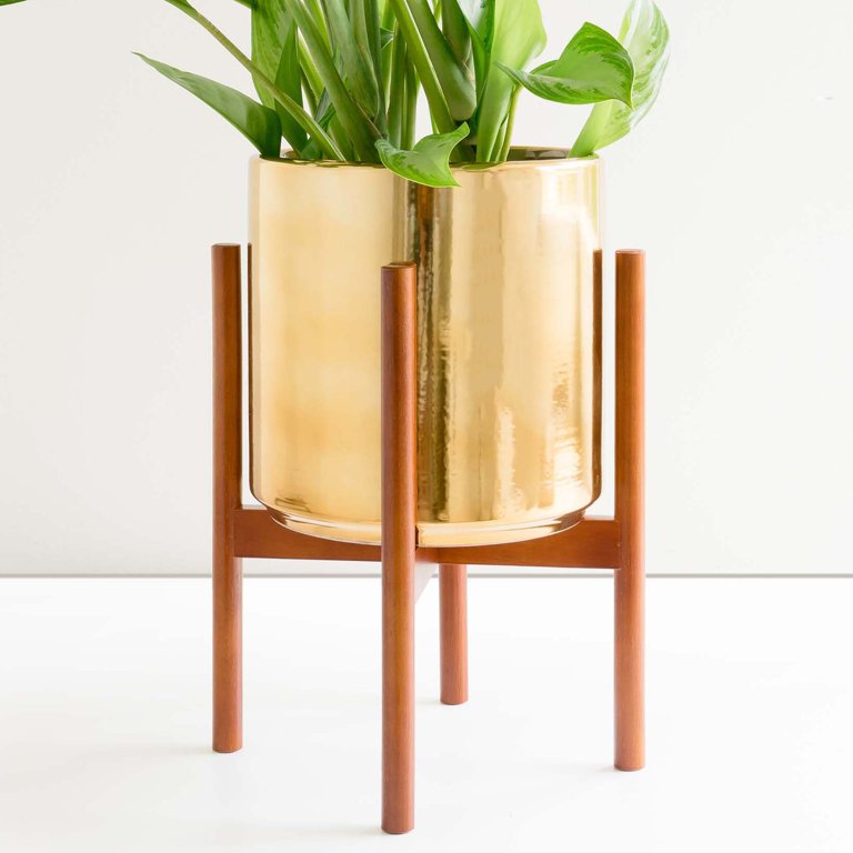 Peach Pebble 12 In Gold Ceramic Planter With Medium Wood Stand 10 In 12 In Or 15 In Walmart Com